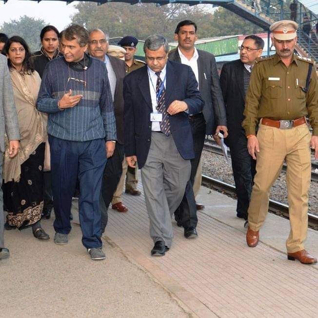 गुरुग्राम के रेलवे स्टेशन का निरीक्षण करते हुए रेलवे के अधिकारियों के साथ एक दिशा ट्रस्ट के पदाधिकारी